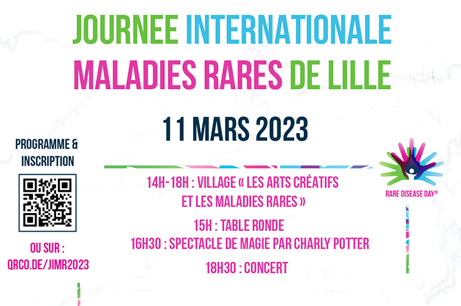La Plateforme d’expertise maladies rares lilloise PLEMaRa (CHU de Lille), organise le 11 mars 2023 un Village éphémère « Les arts créatifs et les maladies rares » à l’occasion de la Journée Internationale des Maladies Rares 2023 au Nouveau Siècle à Lille. Nombreuses animations à partir de 14h, stands d’information des associations, centres et filières de santé maladies rares. Tout au long de l’après-midi, participez aux différentes animations, table ronde sur la thématique du patient acteur de son parcours de soin, spectacle de magie, pour clôturer à 18h30 par un concert.